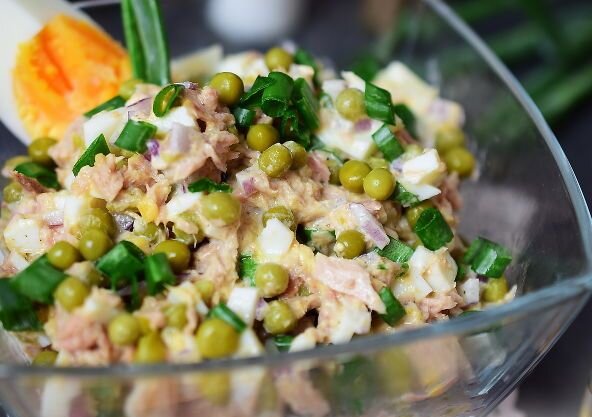 Хочешь много интересных рецептов, тогда скорее подписывайся на наш канал и смотри наши публикации. Впереди еще много интересного! Ингредиенты: Тунец - 1 банка Горошек консервированный - 120 г Лук - 1 шт. Яйца - 2 шт. Петрушка - по вкусу Лук зеленый - 3 пера Майонез - по вкусу Приготовление: 1. Тунец отправить в салатницу и размять 2. Добавляем к тунцу горошек консервированный 3. Яйца отварить. Одно нарезать мелко и добавить в салатницу, второе на четвертинки для украшения и убрать в сторону 4. Петрушку, лук и зелень лука нарезать мелко и добавить в салатницу, заправить майонезом, добавьте соль и перец по вкусу. перемешиваем 5. Украшаем яйцом и подаем к столу. Приятного аппетита :) Заработай на мечту, 600 %прибыли, ЖМИ СКОРЕЕ Если Вам нравятся наши рецепты ставим ЛАЙК и подписываемся наканал. СРЕДСТВА ДЛЯ ПОХУДЕНИЯ В ДОМАШНИХ УСЛОВИЯ ПОЛЕЗНЫЕ МЕЛОЧИ ДЛЯ ВАШЕЙ КУХНИ СБОРНИК ВСЕХ РЕЦЕПТОВ "РЕЦЕПТОМАНИИ" ХОЧУ ПОХУДЕТЬ! НАУЧИТЕ!?