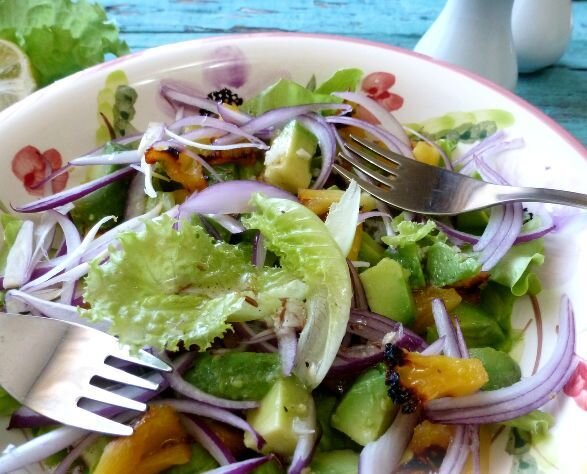 Хочешь много интересных рецептов, тогда скорее подписывайся на наш канал и смотри наши публикации. Впереди еще много интересного! Ингредиенты: Ананас консервированный - 100 г Авокадо - 1 шт. Листья салата - 3 шт. Лук - 0,5 шт. Чеснок - 1 зуб Тмин - 0,3 ч. л. Лайм - 1 шт. Соль, Перец черный молотый - по вкусу Масло оливковое - 2 ст. л. Сахар - по вкусу Приготовление: 1. Ананасы выложить в форму для запекания, посыпать сахаром и запекать в духовке при температуре 200 градусов до карамельной корочки 2. Ананасы остудить и нарезать на небольшие кубики Готовим заправку: 1. В миске смешать оливковое масло, тмин, сок половины лайма, давленный чеснок, посолить и приправить перцем 3. Тонко нарезать лук, авокадо очистить от кожуры нарезать кубиками, полить соком половины лайма. 4. Нарвать листья салата и выложить в салатницу, поверх разложить кусочки ананаса, авокадо, залить заправкой и посыпать порезанным луком. Заработай на мечту, 600 %прибыли, ЖМИ СКОРЕЕ Если Вам нравятся наши рецепты ста