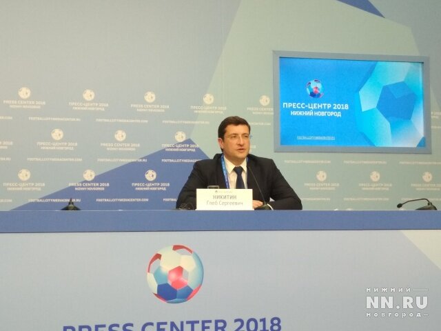 Пресс-центр чемпионата мира по футболу FIFA 2018 открылся в Нижнем Новгороде 13 июня при участии врио губернатора Нижегородской области Глеба Никитина. Аккредитованные журналисты смогут воспользоваться здесь ноутбуками, Wi-Fi и оргтехникой, а также посмотреть матчи ЧМ-2018 в прямом эфире. В пресс-центре будут проходить пресс-конференции футболистов, послов городов-организаторов и региональных властей. Первую пресс-конференцию в центре провёл Глеб Никитин Глава региона рассказал журналистам, что за время чемпионата Нижний Новгород планирует принять до 200 тысяч болельщиков, треть из которых — иностранцы. При этом Глеб Никитин отметил, что жителям города не стоит бояться английских фанатов, поскольку большинство из них «интеллигентные люди, которые просто любят футбол».
