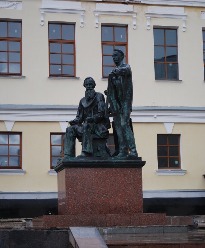 Меня покорил местный художественный музей им. Васнецовых. Около него вот такая симпатичная клумба и памятник братьям Васнецовым. 5(18) декабря 1910 г. состоялось торжественное открытие Вятского художественно-исторического музея, который стал первым музеем подобного плана на всём севере и северо-востоке России. Разместился он в помещении бывшего книжного склада на улице Владимирской, временно предоставленном ему Губернской земской управой.