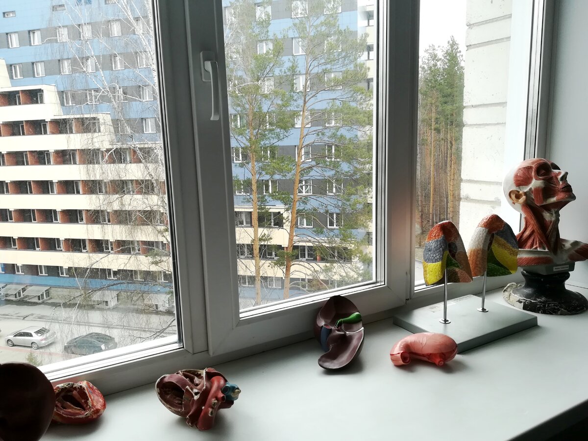 Светлая, небольшая аудитория, обставленная методическими пособиями - макетами органов, шкафы с пробирками и мензурками, два стола, похожие на хирургические – рабочая обстановка студентов медицинского факультета. На одном из столов лежит очень реалистично изготовленный прототип пациента. Небольшая группа студентов, как оказалось, знающая "в лицо" каждый орган, мышцу, вену, приступила к практическому занятию по анатомии. Уровень подготовки будущих врачей, студентов НГУ, приятно удивил. Посетив практическое занятие и сдачу «хвостов», я поняла, что доверить свою жизнь и здоровье врачу, получившему диплом этого уважаемого университета можно без всяких опасений. Выученные домашние задания студенты отвечают не у доски, а наглядно демонстрируют на макетах - частях человеческого тела, обработанных по особой технологии. Очень хорошая, хотя и слегка экстравагантная для обычного обывателя, практика. Вряд ли студент, прошедший такого рода подготовку, растеряется во время операции. Наблюдая за