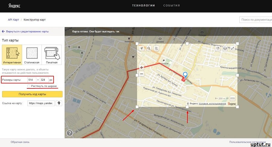 Для загрузки созданной карты на ресурс, вам надо получить код. Нажмите на Получить код карты.