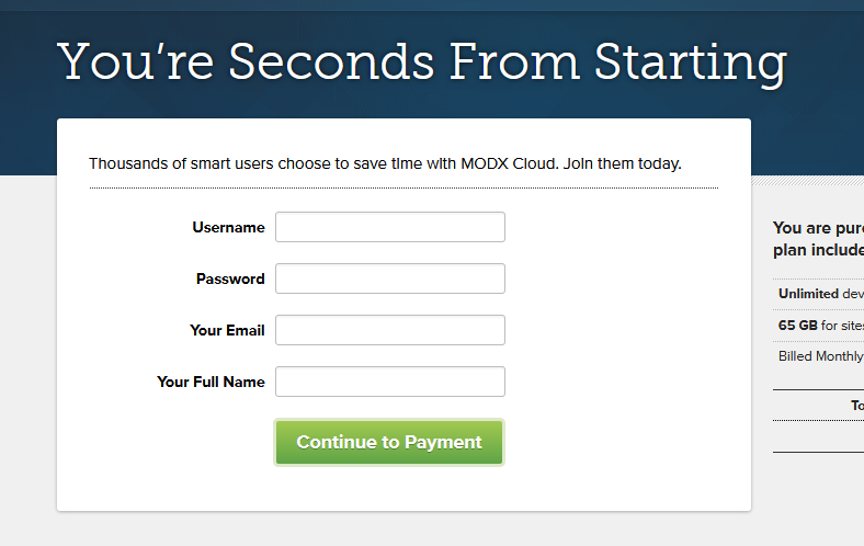Перед началом работы скачайте сборку modx revolution для быстрого создания сайтов. Сборка в свободном доступе на официальном сайте modx. Пока происходит загрузка данной программы, зарегистрируйтесь на сайте modx. На странице скачивания присутствует кнопка Начать сейчас. Нажмите на неё и попадёте на страницу с формой регистрации.