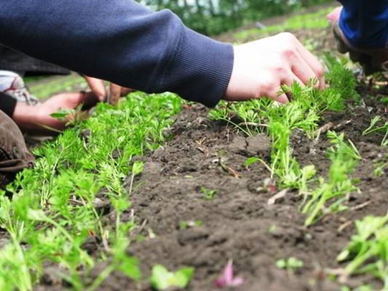 За окном снова дождь и +12 градусов. Но природа берет своё. Хорошо взошли морковь и свекла. Пришло время прореживать. Дожди у нас короткие. Лишь поверхность земли смачивают. Что важно учесть при прополке? Все мы знаем, что хорошая развитая корневая система - залог успешного урожая. Чтобы морковь и свёкла дали хорошие корнеплоды, каждому из растений должно быть достаточно места для развития. А теперь к самому интересному, знаете ли вы, что слабые или густорастущие растения можно только прищипнуть, оставив корень в земле. Оставшиеся в земле корни будут помогать в развитии своим оставшимся собратьям. Этот факт я заметила, выращивая рассаду перца в торфяных таблетках. Погибнувшее растение питало своими корнями соседа. Это можно проследить, когда смотришь на 2 таблетки рядом и видишь направление корней. Фотографировать в тот момент я не стала. Решила почитать литературу и нашла подтверждение этого факта агрономами и учёными. Например, корни берез, растущих поблизости срастаются на 3
