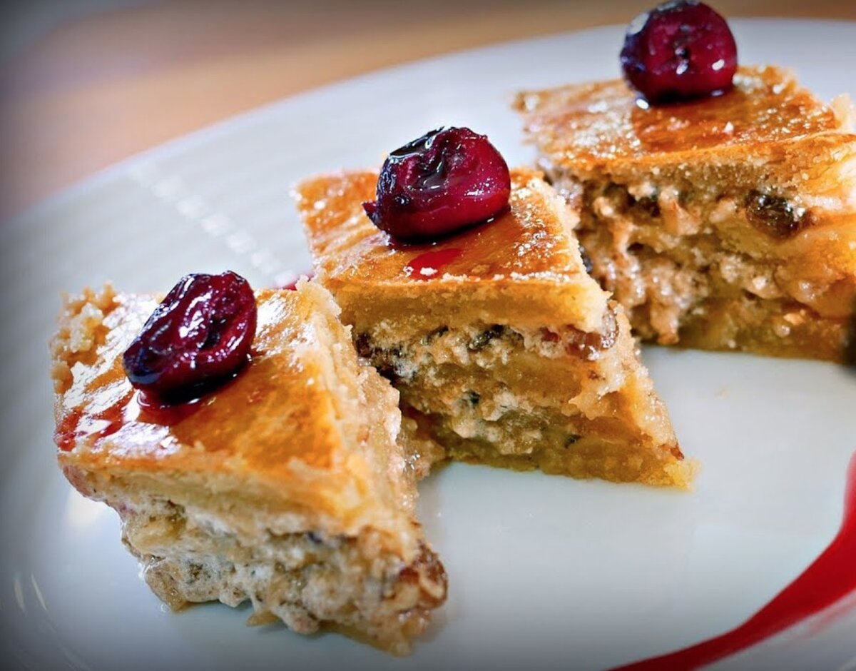Пахлава — это, наверное, самая известная восточная сладость. Делается из множества тончайших листов слоеного теста, меда и грецких орехов.