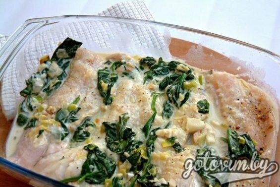 Этот рецепт приготовления минтая под соусом достался мне от мамы. Как и положено классическим "маминым" рецептам, блюдо простое в приготовлении, экономное, доступное, сытное и вкусное! Попробуйте! Описание приготовления: Этот простой рецепт минтая под соусом хорошо подходит для разнообразия семейных обедов. Гарнир может быть любой. Но мне больше всего нравится подавать такую рыбку с отварным рисом. Попробуйте, очень вкусно и полезно! Ингридиенты: Как приготовить Минтай под соусом 1. Подготовим филе - удалим кости и натираем специями. Пусть полежат в холодильнике, пропитаются, пока мы будем делать соус. 2. Обжарим на сковороде лук-порей (белую часть) в растительном масле до мягкости. Далее добавим шпинат, перемешаем. Добавим пропущенный через пресс чеснок, закрываем крышкой, даем овощам чуть потушиться. Добавим затем сметану и специи по вкусу. 3. Подготовленное филе выкладываем на дно формы для запекания, заливаем соусом. Тушим на плите 10 минут, периодически переворачивая рыбку, или