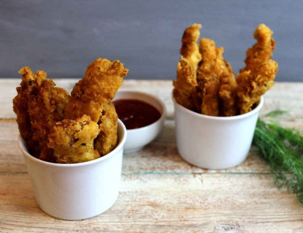 Стрипсы - это жареные кусочки филе курицы в панировке. Многие посетители ресторанов быстрого питания КФС знают это блюдо. Оно вкусное и сочное. Хотя его очень просто сделать своими руками. И сегодня я хочу рассказать Вам как это сделать. Следуя моему рецепту, стрипсы получатся один в один как у оригинала КФС. Ну, что попробуем сделать? Нам понадобиться: 1. куриные грудки - 2 шт 2. яйцо - 1 шт 3. специи для курицы 4. молоко - половина стакана 5. соль и паприка по вкусу 6. мука - 2 стакана Куриные грудки нужно нарезать кусочками 3 см по ширине и 8-10 см в длину. Взбиваем яйцо с молоком и добавляем паприку, соль и половину стакана муки. Кусочки филе положить в эту смесь на 20 минут. В пакет сыпем оставшуюся муку и паприку(можно перец). Кладём в него курицу и хорошенько встряхиваем содержимое. В сотейник наливаем масло и ставим на огонь. Масла должно быть много. Жарим до золотистой корочки. Вот и весь секрет. Приятного аппетита! Если понравилась статья, ставьте