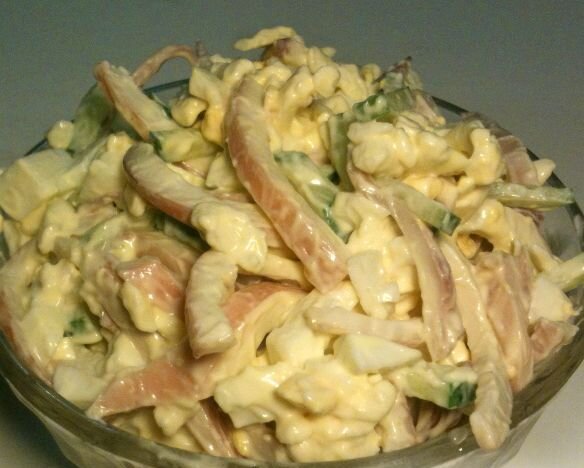 Салат из кальмаров с яйцами, как же просто накормить всю семью вкусняшкой
