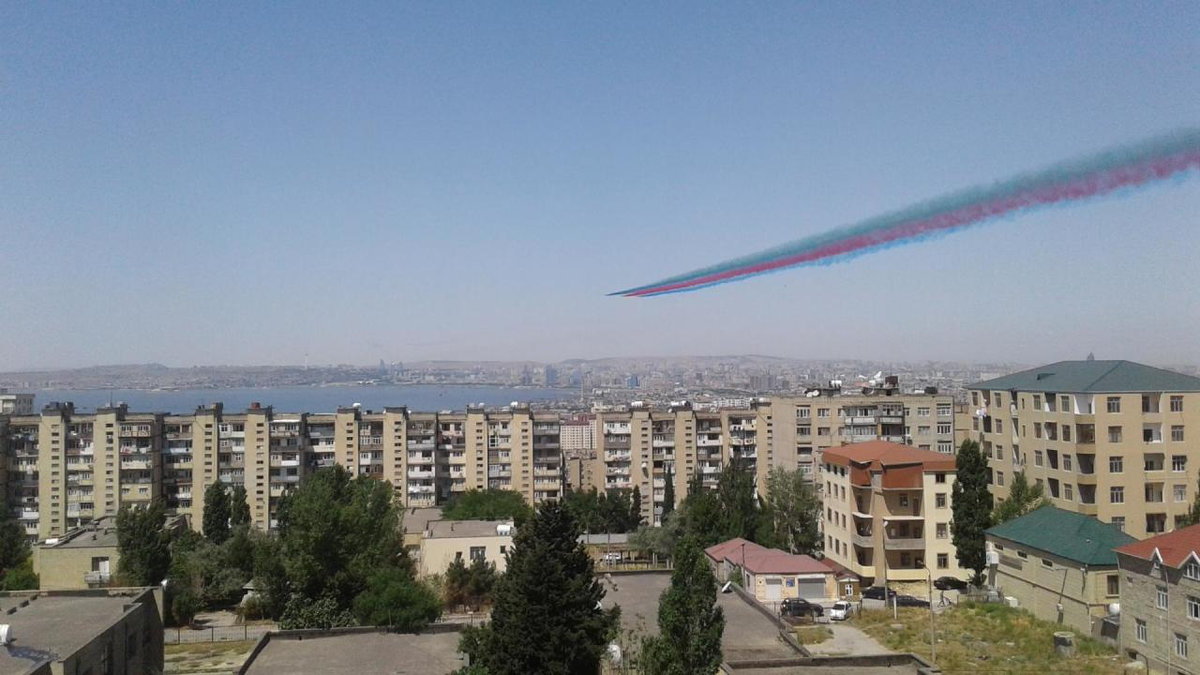 Ребят всем привет. С целью подготовки к праздничным мероприятиям по случаю 100-летия Вооруженных сил Азербайджанской Республики авиационные средства Военно-воздушных сил Азербайджана проводят полеты над Бакинской бухтой. В связи с праздничными мероприятиями, посвященными 100-летию Вооруженных Сил Азербайджана, над Бакинской бухтой будут проведены показательные полеты самолетов, входящих в состав групп "Соло Тюрк" и "Турецкие звезды" За авиашоу можно будет наблюдать на территории Приморского национального парка 26-го июня в 12:30 после завершения военного парада.