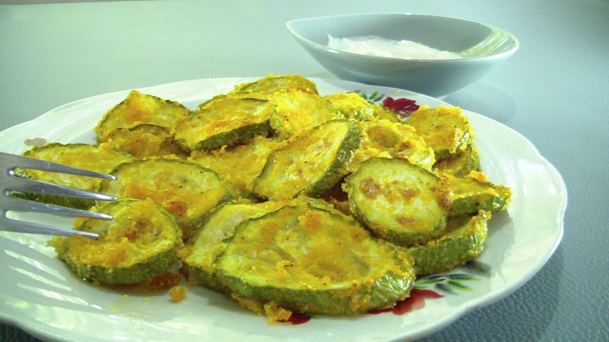 Кабачками обжаренными в панировке никого не удивишь, а вот кабачками запеченными в панировке.. Ингредиенты: • Кабачки - 2 шт. • Мука кукурузная - 3 ст. л. • Соль - 0,5 ч. л. • Паприка - 0,5 ч. л. • Черный перец - 1 щепотка • Чеснок гранулированный - 1 щепотка • Масло оливковое - 2 ст. л.