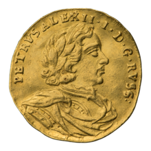 Золотые монеты Петра I — монеты Русского царства и Российской империи, отчеканенные из золота во времена правления Петра I. Укрепление связей и увеличение объёмов торговли с европейскими государствами побудили царя в ходе денежной реформы ввести в обращение монеты из золота. Благодаря этому в России впервые появились расчётные золотые монеты. Первыми такими монетами в 1701 году стали золотые червонцы без номинала, по пробе и весу аналогичные европейскому образцу. На аверсе размещался портрет Петра I, на реверсе двуглавый орёл, отличием от дукатов были отчеканенные кириллические надписи. Из-за невыгодного курса на ввоз европейского золота, Россия покупала его в Китае. В 1716 году для заграничной поездки царя была отчеканена партия золотых червонцев с латинскими надписями, это был беспрецедентный случай. Во время путешествия по Европе посольство Петра расплачивались в том числе и такими червонцами. С 1718 года началась чеканка золотых монет номиналом 2 рубля. Сырьём для них служили пе