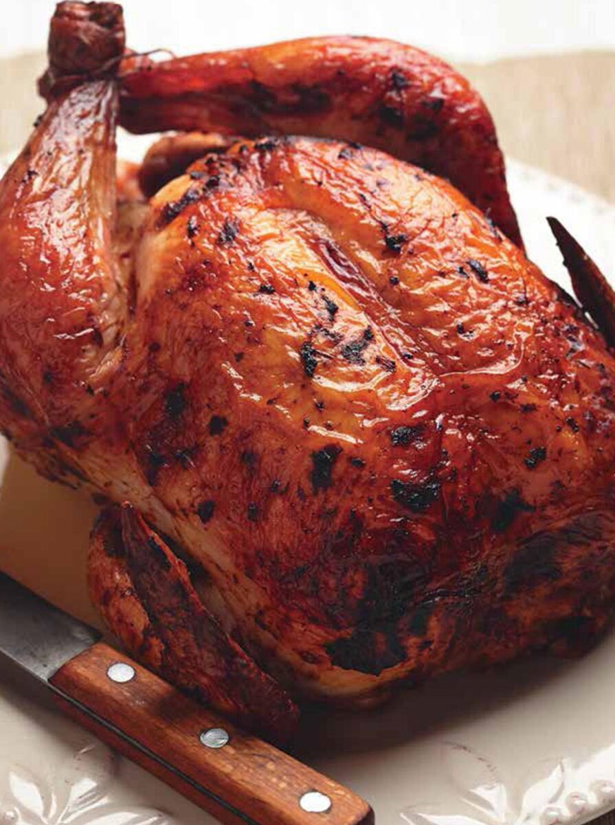 Время приготовления: 2 часа Ингредиенты: 1 крупная курица для запекания щепотка сухого базилика щепотка тёртого мускатного ореха 100 г лапши 1 луковица 2 ст. л. растительного масла 100 г куриной печени 100 г маринованных грибов 1 ст. л. мягкого сыра 30 г сливочного масла соль и перец по вкусу Приготовление: 1. Курицу промыть, обсушить, обмазать солью, перцем, базиликом и мускатным орехом. 2. Лапшу отварить до готовности, откинуть в сито. 3. Лук очистить, мелко нарезать, спассеровать в растительном масле до мягкости, добавить печень, готовить 3–5 минут. 4. Грибы откинуть в дуршлаг, дать стечь маринаду, нарезать. Добавить к луку и печени, перемешать, влить 4 ст. ложки воды, тушить 3 минуты. Добавить лапшу и сыр, посолить, поперчить по вкусу, добавить остальные специи. 5. Курицу наполнить приготовленным фаршем, зашить. Обмазать растопленным сливочным маслом. Завернуть в фольгу, поместить в духовку, готовить при 180 °C в течение примерно 70 минут. Всем приятного аппетита!! Ставьте лайк и