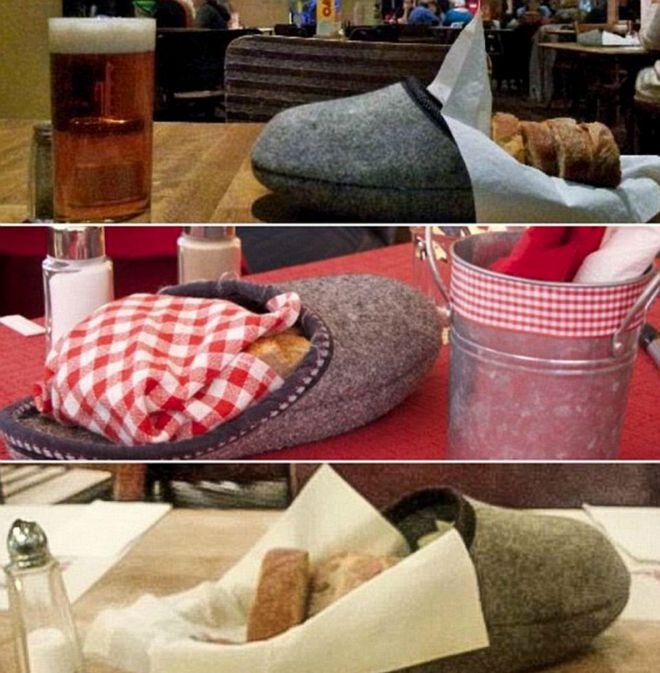 Сегодня очень трудно удивить современного потребителя, что только не придумывают в ресторанах и кафе, но мы хотим выделить особенно запоминающиеся подачи блюд по всему миру. Итак, начнем: 1. Тарелки или блюдца? Некоторые считают, что это уже устаревший и неинтересный вид подачи. Традиционное блюдо должно быть ... в тапочке? 2. Посетители привыкали к официантам и обслуживающему персоналу. Как правило, человек в фирменной одежде ресторана с подносом в руках. А что если поднос заменить на более интересный вариант, например, на теннисную ракетку. 3. Мы уже рассказывали нашим читателям про съедобные кофейные стаканчики и мы уверенны, что вы слышали про то, как подают суп в хлебе, но вы удивитесь, узнав, что бывает кофе в моркови!! Да-да вам не показалось, из корнеплодов делают небольшие чашечки, которые и подают посетителям. 4. Как же хорошо в походе, когда в детстве собираешь рюкзак и вперед в лес вместе с друзьями! Но бывает и такое, что можно почувствовать себя туристом находясь прям в