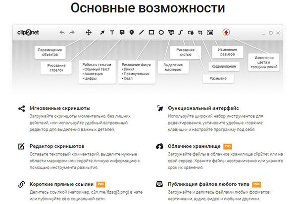 Программа для создания скриншотов Clip2net представляет из себя весьма удобный инструмент, который позволяет быстро сделать снимок с экрана, записать видео и сразу же опубликовать или закачать его на облачное хранилище данной программы в Интернете. Как и все остальные собратья, Clip2net имеет стандартный функционал при создании скриншотов. Но отличительной чертой данной программы является то, что минуя редактор программы, в котором можно предварительно отредактировать полученный снимок, его можно сразу же разместить в Интернете. Всё это программа делает быстро, после нажатия клавиши print screen и выделения необходимой области для скриншота, Clip2net сразу же публикует изображения на своем сайте и отрывает страницу в браузере, с которой можно полученный скриншот скачать или поделится им с друзьями в социальных сетях. Если же сразу после создания, скриншот публиковать не надо, то его можно тут же отредактировать редактором программы, который позволяет быстро сделать обводку определенн