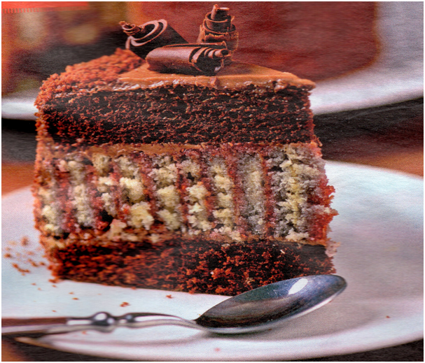 1. Для бисквита яйца взбить с сахаром в пену, добавить просеянный какао-порошок и перемешать. всыпать смешанную с крахмалом просеянную муку, перемешать и взбить.