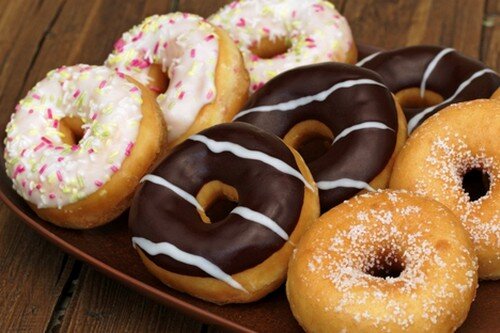 50-100 гр сливок В чаше соединяем яйца с сахаром и взбиваем миксером до пышной светлой массы. На это уйдет примерно 5 минут. Чем лучше Вы взобьете яйца, тем пышнее и нежнее будут Ваши пончики. В пышную, посветлевшую массу добавляем творог и просеянную вместе с разрыхлителем муку и на низкой скорости миксера перемешиваем до однородности. Тесто получается довольно липким, но нам такое и нужно. Теперь берем чашу с тестом, чашу с манкой и чашу с холодной водой. Окунаем руки в воду, набираем немного теста, примерно 1 полную чайную ложку и катаем шарики, обваливаем их в манной крупе, вместо крупы можно использовать муку. С данного количества теста получается 15-20 пончиков. Из такого же теста также можно приготовить пончики стандартной формы. Для этого берем полную ложку теста, обваливаем в муке и скатываем шар. В середине делаем небольшое отверстие и пончик готов. Жарить такие пончики необходимо во фритюре, в раскаленном масле. Если у Вас нет фритюрницы, возьмите небольшой ковш или сотейн