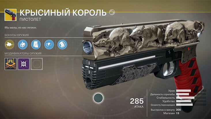В Destiny 2 есть мощное экзотическое оружие, некоторые виды которого, как например пистолет «Крысиный король», можно получить за выполнение специальных заданий. В процессе прохождения данного квеста вам предстоит разгадать несколько сложных пространственных загадок. Чтобы облегчить вам эту задачу, в данном гайде мы детально расскажем, как выполнить квест на получение экзотического пистолета. Особенности пистолета «Крысиный король» Как выполнить задание и получить «Крысиный король» в Destiny 2 1. Пройдите основную сюжетную линию и получите 20 левел. Таким образом, вы получите доступ к заданию «Враг моего врага» на планете Титан. На карте оно будет отображаться синим указателем. 2. За успешное выполнение задания вы получите предмет «Отряд крысиного короля», который будет содержать загадку в виде детского стишка. 3. Первая загадка подразумевает выполнение трех Патрульных миссий. При этом в вашей команде должен быть по крайней мере один Страж. 4. Вторая загадка подразумевает выполнение дв