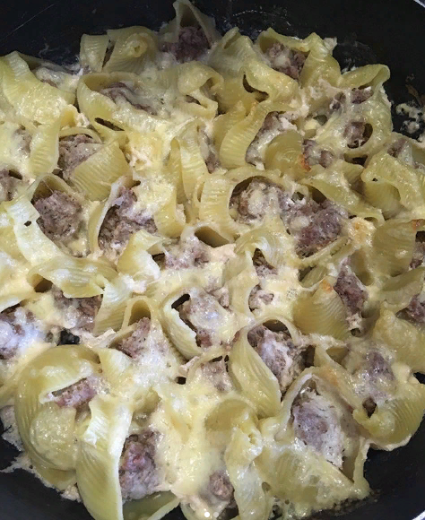 Йогурт солим, добавляем немного воды. Заливаем фаршированные ракушки. Сверху сыр. И в духовку до готовности)))