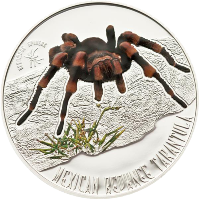 Серия «Насекомые» выпущена для самых маленьких нумизматов. На каждой монете присутствует реалистичное изображение определенного насекомого. В комплекте с каждым коллекционным экземпляром поставляются постеры и стикеры. Представьте только, в каком замешательстве могут быть продавцы, увидев такое. Такую монету, с изображением мексиканского красноколенного паука-птицееда из серии "Ядовитые пауки", заказал остров Ниуэ.