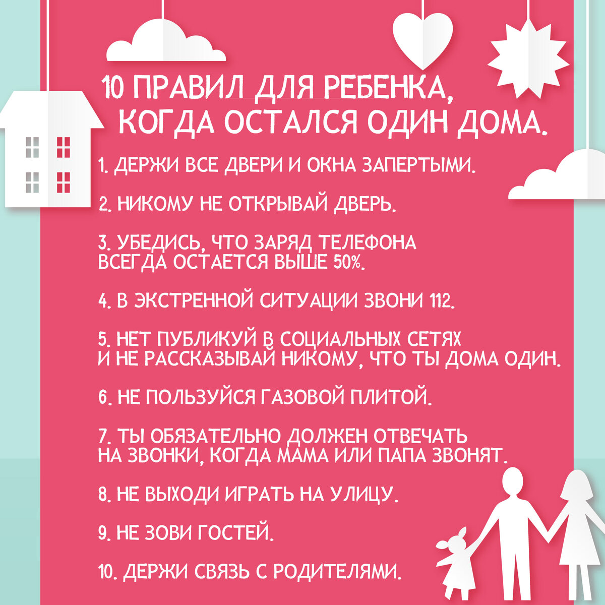 10 важных правил для ребенка, который остался один дома.