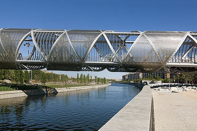 В Мадриде есть оригинальный пешеходный мост "Аргансуэла" в виде спиральной трубы. Он соединяет старый район Аргансуэла с новым, быстро развивающимся Карабанчель, и предназначен для передвижения пешеходов и велосипедистов. Мост "Аргансуэла" состоит из двух частей, 150 и 128 метров. Мост разделен на две части: пешеходная часть и велодорожка между ними расположились деревянные лавочки, для отдыха. Его разработкой занимался очень известный своими неординарными проектами в стиле Hi-Tech французский архитектор Доминик Перро. Строительство этого моста было начато в 2005 году и был завершен в апреле 2011 года. Красиво и необычно! ДА? Понравилось- ставьте лайки , не забывайте! Подписывайтесь на мой канал и узнаете много интересного!!!