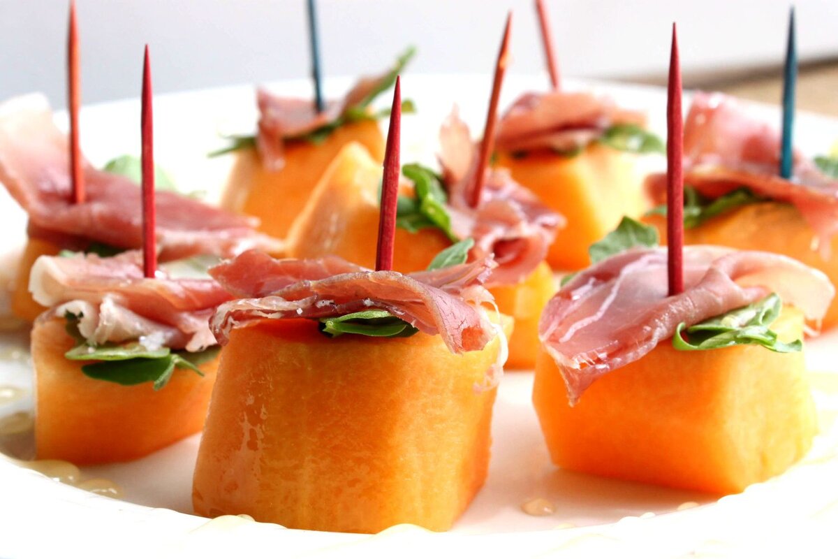 🍢 Аппетайзер: Канапе с дыней и прошутто