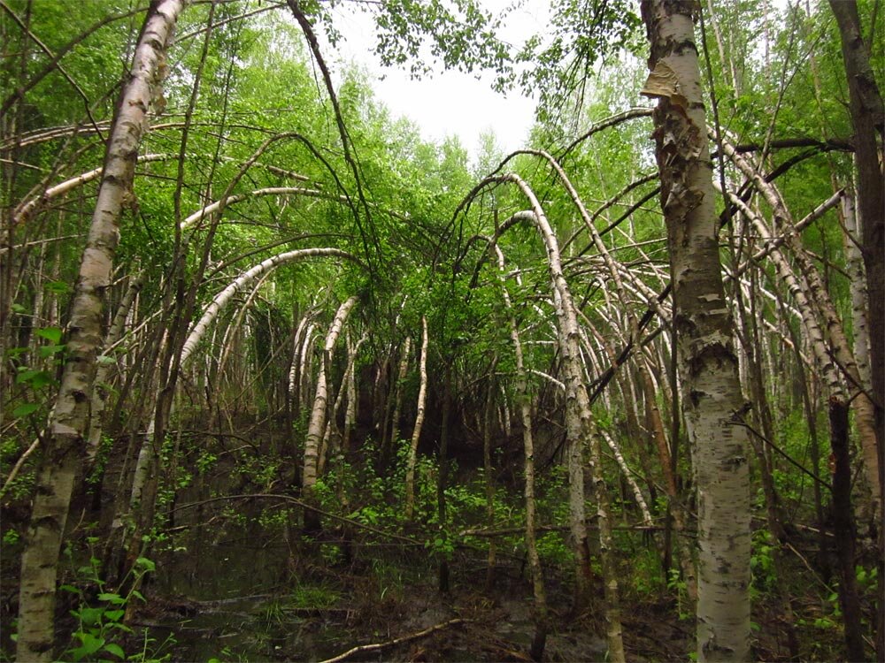 А вы слыхали про место под названием Шушморе? Нет, а вот очень загадочное это место. И находится не так далеко от столицы. На границе Владимирской области и подмосковной Шатуры. Удивительное это место тем, что там происходят очень странные вещи. Ну к био-магнитным зонам, где не работают любые приборы и прочее мы давно привыкли. Но именно здесь время поворачивается в спять, и вообще творит такое, что даже природа реагирует на мощнейшую энергетику. Активность подобной аномалии началась еще в конце позапрошлого века, когда на тракте проходящем через активное кольцо, стали пропадать целые обозы. Но самое удивительно, что пропавших людей видели снова спустя шестьдесят лет. И это лишь часть удивительной аномалии Шушмор. Природа здесь тоже удивительная. Только здесь вы увидите березы с квадратными стволами и изогнутые стволы орешника в виде знака вопроса. С чем же связано удивительное влияние этого места? В первую очередь с народами, что населяли здешние края. В одной из легенд говорит