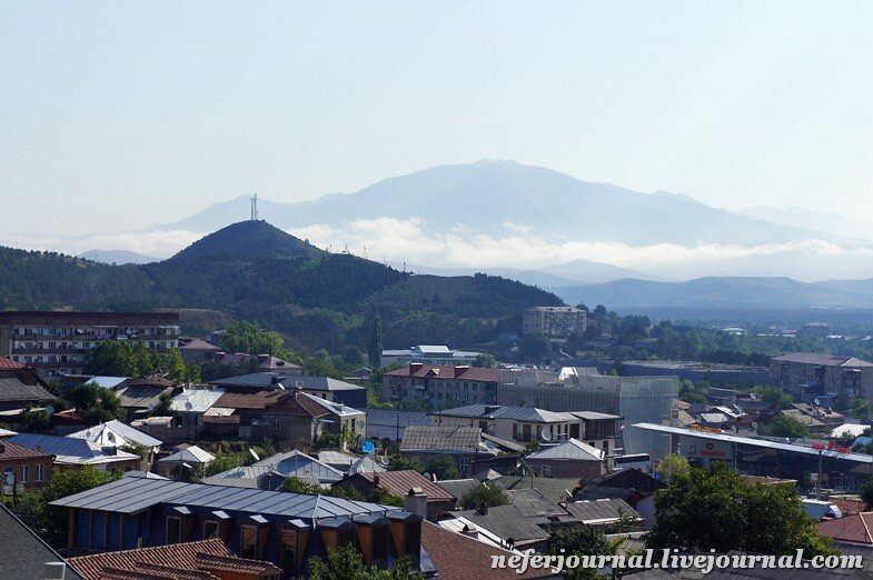В Ахалцихе мы прибыли накануне. Как только въехали в город, небо потемнело и разразилось ливнем. Было жутковато и одновременно красиво. Но лезть за фотоаппаратом в такую погоду не хотелось. Мы поселились в гестхаусе, и это была самая спокойная ночь за все время пребывания в Грузии. Я отлично выспалась. Наутро было уже ясно, поэтому Ахалцихе у меня получился исключительно солнечным. До турецкой границы около 20 км, вокруг горы, на которых то и дело застревают облака - очень живописно.