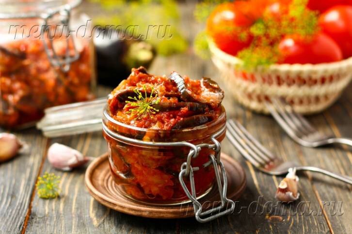 Самое время заготовить эту бесподобную закуску! Острые, пикантные, ароматные баклажаны буквально улетают со стола зимой! Но и летом их можно подать к мясу, овощам или рыбе. Особенно хорошо «заходят» такие баклажаны с шашлыком. Все, кто пробовал закуску, обязательно просят рецепт. Готовится консервация несложно, ведь не требует стерилизации. Заготавливайте сразу побольше, ведь такой вкуснятины много не бывает! Ингредиенты: баклажаны - 2 кг помидоры - 500-600 г сладкий перец - 500-600 г острый перец - 1-2 шт. чеснок - 2-3 головки уксус 6% - 50 мл подсолнечное масло - 100 мл сахар - 100 г соль - 1 ст. л. Из этих ингредиентов получится примерно 3 литровых банки. Приготовление: 1. Нарежьте баклажаны как больше нарвится: тонкими кружочками, продолговатыми брусками или продольными пластинками. Сложите нарезанные баклажаны в миску и засыпьте солью. Отставьте на 15-20 минут, чтобы образовался сок, с ними выйдет вся горечь. 2. Сладкий перец очистите от семян, крупно нарежьте. 3. По