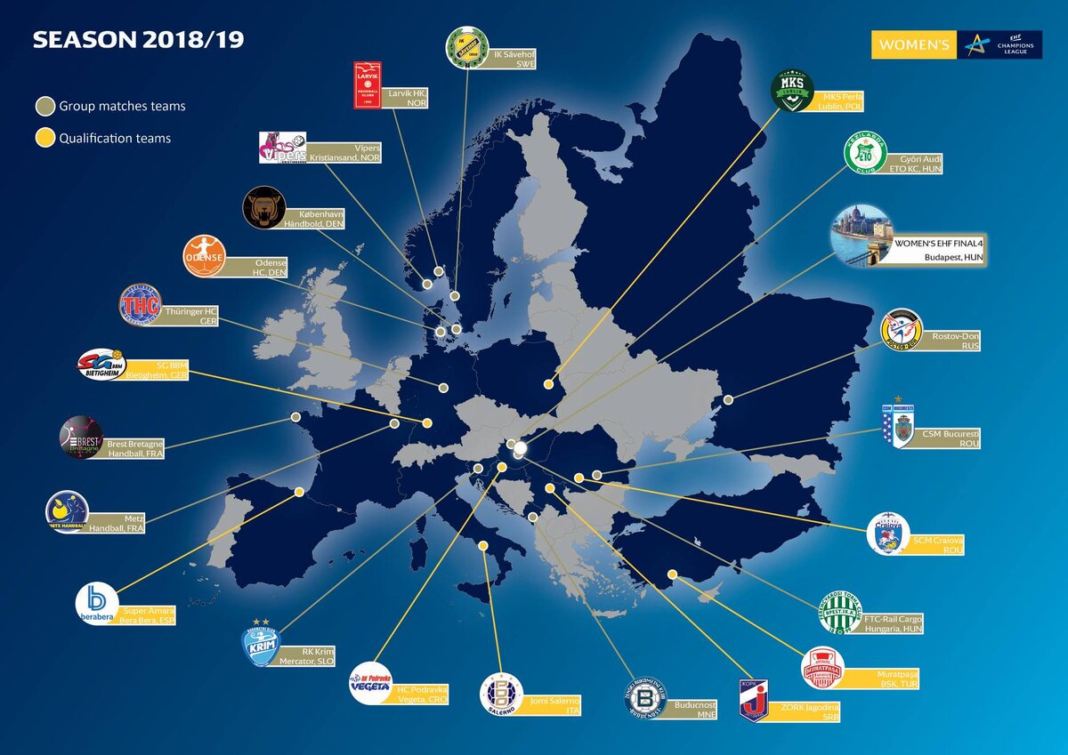 Окончательный список участников Лиги Чемпионов 2018/2019 был озвучен 18 июня на встрече Исполнительного комитета ЕГФ в Глазго. В данный момент известны 14 из 16 участников группового этапа: Ростов-Дон (Россия), Дьер (Венгрия), Бухарест (Румыния), Будучность (Черногория), Мец (Франция), Копенгаген (Дания), Кристиансанд (Новегия), Тюрингер (Германия), Крим Меркатор (Словения), Севехоф (Швеция), Ференцварош (Венгрия), Оденсе (Дания), Брест (Франция), Ларвик (Норвегия). Еще два места в групповом этапе разыграют восемь участников квалификационных турниров: Люблин (Польша), Подравка (Хорватия), Салерно (Италия), Муратпаша (Турция). Бера-Бера (Испания), Ягодина (Сербия), Крайова (Румыния), Битигхайм (Германия). Жеребьевка квалификационного раунда состоится в Вене 27 июня, группового этапа - 29 июня (также в столице Австрии). Первые матчи группового этапа пройдут в период с 5 по 7 октября, заключительные – 16-18 ноября. Основной раунд начнется 25-27 января 2019 года и завершится 8-10 мар