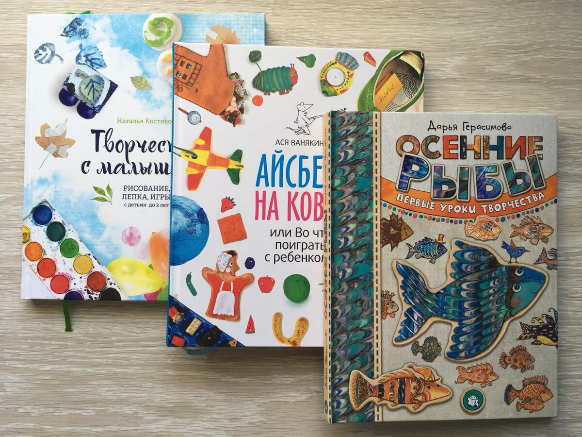 Творчество. Оно очень многогранно и абсолютно точно необходимо детям (даже нейропсихолог Валентина Паевская так говорит, да). Краски, карандаши, мелки, пластилин — стандартный набор в арсенале любой детской комнаты. А что-то поинтереснее? А совсем с малышами? Лично я лентяй, я никогда не буду делать то, что требует от меня больших усилий, телодвижений и умений. Мне, пожалуйста, что-нибудь попроще и что можно сделать быстро, либо с минимальной подготовкой. И чтобы самой не надо было придумывать, потому что я не особо одарена творческой фантазией. Короче, мне нужны шпаргалки, чтобы было много вариантов, всё под рукой, а я могла выбрать из предложенного многообразия. Вот эти три книги, две от МИФа и одна от Лабиринта, сложились в отличный комплект, которого хватит месяцев с 8 до 8-9 лет. Со старшей Марго я мало делала, каюсь, хочу оправдаться в собственных глазах уже с младшей Элей. С Ритой при этом буду заниматься по книге Дарьи Герасимовой, дочке скоро 5 лет, как раз до многих техник из