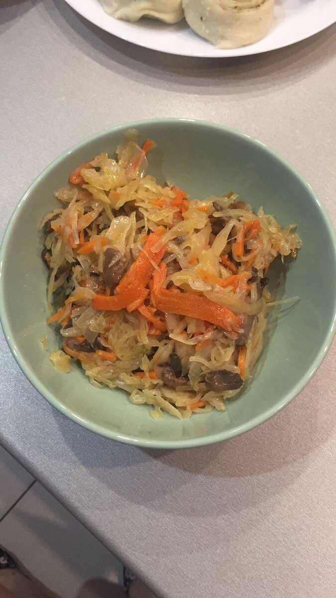 Ингредиенты -1 кг купусты -1/2 кг шампиньоны -1 луковица -1 морковь -подсолнечное масло -соль, перец Способ приготовления. Нашинковать капусту. Порезать грибы на кусочки. Нарезать или нашинковать морковь длинными полосками, как картофель фри. Если у вас есть такой нож, то можно нарезать морковь вот так и блюдо будет еще наряднее. Нашинкованную капусту сложить в глубокую сковороду или казан с широким дном, как вам удобно, и какая посуда у вас в пользовании. Налить немного воды, присолить, чтобы капуста быстрее выпустила сок, и дать несколько минут покипеть. Затем открыть крышку и дать возможность быстрее выкипеть жидкости. Как только жидкость выпарится, налить подсолнечное масло и выложить в капусту нашинкованный лук, морковь и нарезанные грибы. Поперчить и при необходимости досолить. Если вы зайдете сюда, то увидите как можно таким ножом красиво оформить даже первые блюда. ПРИЯТНОГО АППЕТИТА! Если вам нравятся мои рецепты, проверенные на собственном опыте, СТАВЬТЕ ЛАЙК и ПОДП