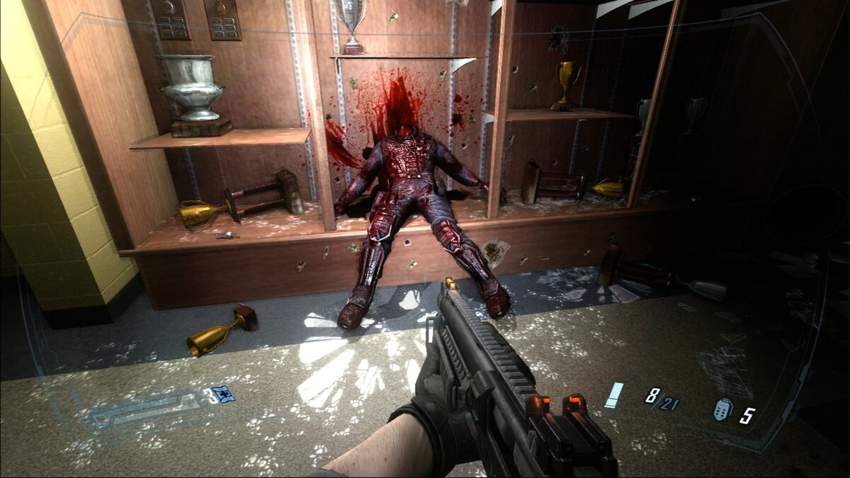 Подразделение Дельта должно отыскать телестезический усилитель и покончить с Альмой. Игрока ждут перестрелки с мутантами, монстрами и выжившими. Исследуй разрушенный город, заглядывай в дома, ищи секретные места. Что касается оружия, в F e a r 2 есть пулемёты, плазмоганы, гвоздомёты, гранаты, огнемёты. Обзаведясь крутыми пушками, можешь смело отправляться в финальный пункт назначения – разум Альмы. Но не спеши, вначале лучше научись управлять боевым роботом, замедлять и останавливать время.