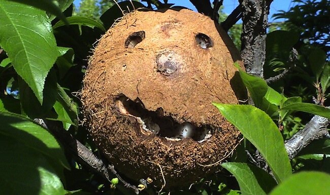 Здравствуйте, уважаемые ценители подводного мира! Ранее я уже рассказывал, как из обычного кокоса можно сделать домик-грот для рыбок. Я описал довольно простой способ, сегодня же хочу поделиться созданием более сложной конструкции. Те кокосы, которые я поставил в своих «баночках», очень полюбились рыбкам. И отдохнуть там можно, и спрятаться. Но, если для маленького аквариума они вполне подходят, то в большом двухсотлитровом смотрятся мелковато, к тому же, если у вас более крупная рыбка, вряд ли подойдут половинки кокоса. Лучше целый, а лучше три! Именно из трёх кокосов я решил сделать «замок» в свой большой «акв». Задумка была выстроить пирамиду. Один кокос должен быть «проходным», то есть «шустрики» должны спокойно проплывать через него. А в двух других должен быть только вход, чтобы рыбки там могли спрятаться или даже нереститься (сомики, например)! Подготовил кокосы так же, как в прошлый раз. Проделав отверстие, слил воду, отпилил верхушки (у одного кокоса с двух сторон). Акку