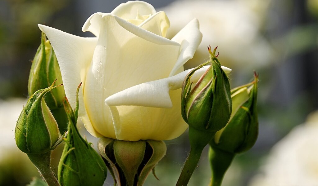 Срезать нужно старые, больные, сухие и слабые побеги. У миниатюрных роз не только обрезают старые ветки, но и укорачивают наполовину все побеги. У крупных и многоцветковых слабые побеги подрезают над пятой-шестой почкой, оставляя остальные более длинными. У вьющихся оставляют только несколько самых сильных побегов. У штамбовых роз, привитых к высоким стволам, обрезают все побеги, оставляя плети длиной около 20 см.