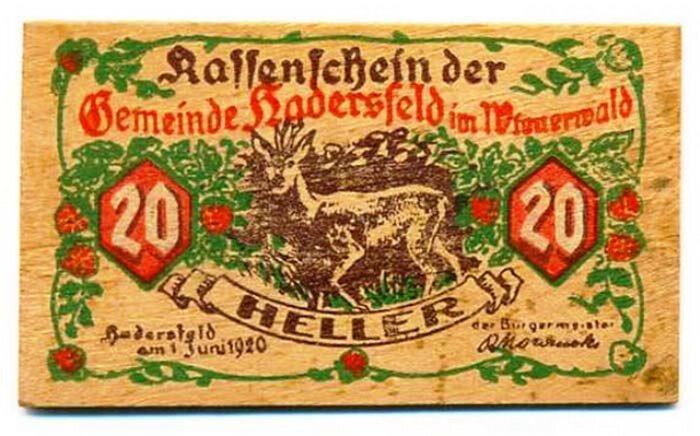 Германия погрузилась в глубокий финансовый кризис после Первой мировой войны. Это привело к тому, что немцы начали выпускать свою собственную неофициальную валюту, называемую "Notgeld" (деньги для чрезвычайной ситуации). Города Германии печатали валюту на чем только возможно - на дереве, алюминиевой фольге, игральных картах, в попытке обойти обесценившуюся стоимость немецкой марки.