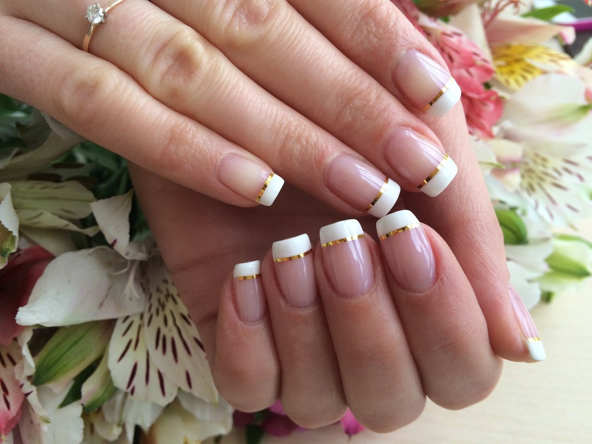 Любая модница обязательно сделает красивый и стильный маникюр с оригинальным дизайном. К такому относится французский маникюр, который будет в тренде в 2018 году осенью и зимой. Мода на данный сезон не предвещает использования слишком ярких и контрастных тонов. Больше естественности будет преобладать в холодном сезоне. Среди модных дизайнов можно выделить такие направления: Все это оснащение может присутствовать на любом стильном виде французского маникюра. Классика Классический белый френч – это всегда ухоженность и аккуратность. Не стоит ничего выдумывать, лишних элементов нет. Единственное, можно обусловить 2-3 ногтя несколькими камушками. Белая линия улыбки обуславливается на пастельном тоне основы. Также ноготь можно оставить естественного цвета. Шеврон Линия улыбки в таком случае немного видоизменяется, то есть становится V-образной формы. Данная деталь носит название «шеврон». Выполнять французский маникюр в данном стиле нужно с блестками, рисунками и камнями, которые будут д