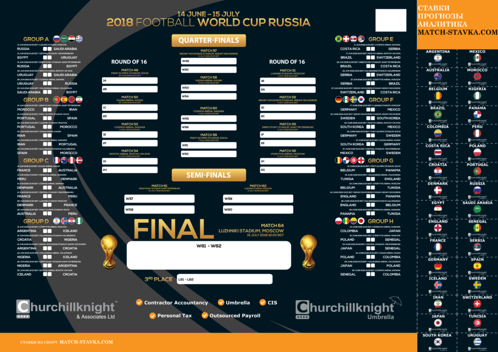 Календарь чемпионата мира по футболу для печати и заполнения