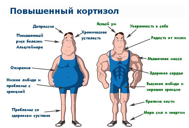 Давайте подведем итоги. Кортизол – гормон стресса. У него есть свои плюсы и минусы. Из положительных сторон: кортизол повышает концентрацию внимания, мобилизирует все ресурсы организма для достижения цели, самосохранение здоровья организма при перегрузках. Из минусов: разрушает мышцы, способствует накоплению жировых отложений, повышает давление, усиливает аппетит, повышает уровень глюкозы в крови.