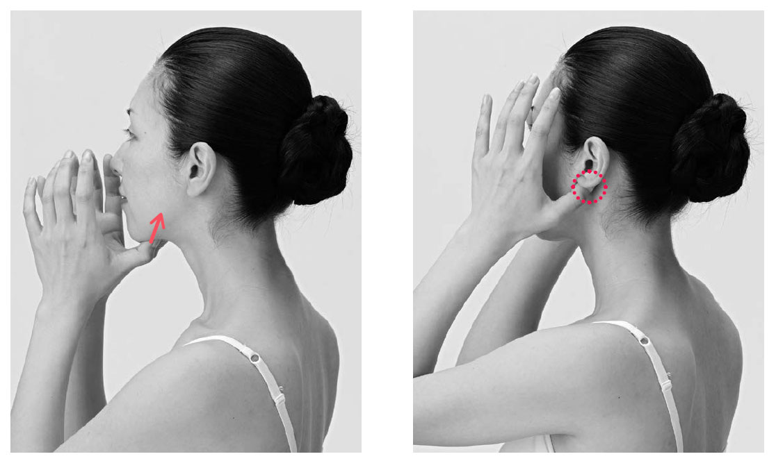 - Большими пальцами массируйте челюсть снизу от кончика подбородка к ушам.
