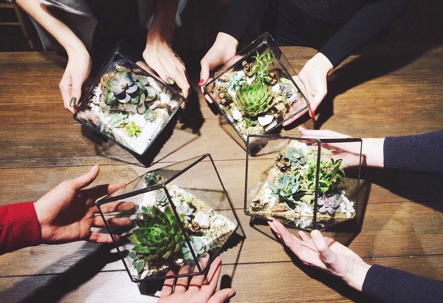Геометрические флорариумы становятся всё более популярны для декора квартиры и замены цветочных горшков. Они очень просты в уходе и долговечны. Как любителя минимализма и растений, меня очень заинтересовал этот предмет интерьера. Решила приобрести флорариум для своих кактусов и алоэ. Правда, цены меня чутка покусали, и я решила сделать его сама. Конечно, в флорариумах из магазина используется стекло и пайка, а, так как у меня нет опыта такой работы, я решила их заменить. Итак, нам понадобится: 1. Прозрачный пластик. Так как я работаю в столярной мастерской, для меня не составило труда найти лишний лист. Однако, не у каждого дома он найдется. Его можно заменить прозрачной частью от коробочки для диска (правда, одного нам не хватит, в данном случае их необходимо 11 штук). 2. Клей для пластика. Я использовала строительный, но и всем известный клей Moment для этого дела подойдёт. 3. Черная изолента. Можно использовать любого цвета, всё зависит от вкуса. 4. То, чем вы будете заполнять