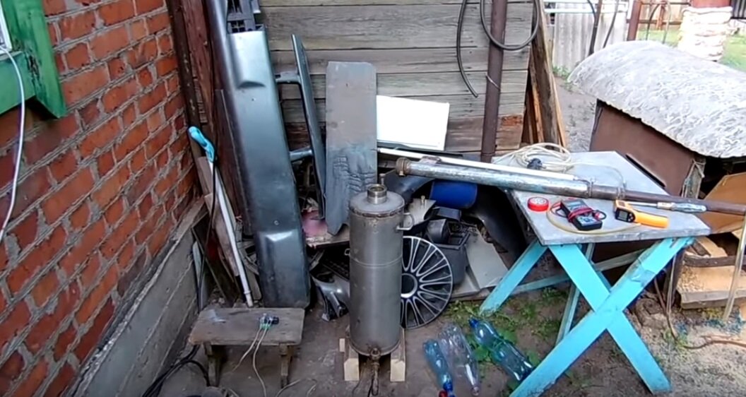 Всем привет. Всех пугают цены на бензин, тем более после последнего подорожания. Но русские никогда не сдаются! Мы решили сделать бензин сами из пластиковых бутылок. Посмотрим, что из этого получится! Вот так выглядит наш аппарат для перегонки нефтепродуктов, он немного не доделан, но испытать можно и в таком состоянии. С помощью другого аппарата, мы получили вот такую жидкость из пластиковых бутылок, что такой за аппарат, расскажем позже. У нас три бутылки, две средней фракции и одна легкой. Заливаем эти фракции, в наш самодельный бензо-перегонный аппарат. Бачек почти наполовину заполнен, всего там 14 литров. На бак устанавливаем трубу. Выглядеть аппарат стал примерно так. Получилось очень уж высоко, ну ничего страшного. В одну фотографию труба не поместилась. Печка электрическая, включаем в розетку и смотрим, как нагреваются эти фракции. Измерения производим в верхней части. Спустя пару минут, пошла жидкость в бутылку. Через некоторое время, получилась вот такая жидкость, зеленовато