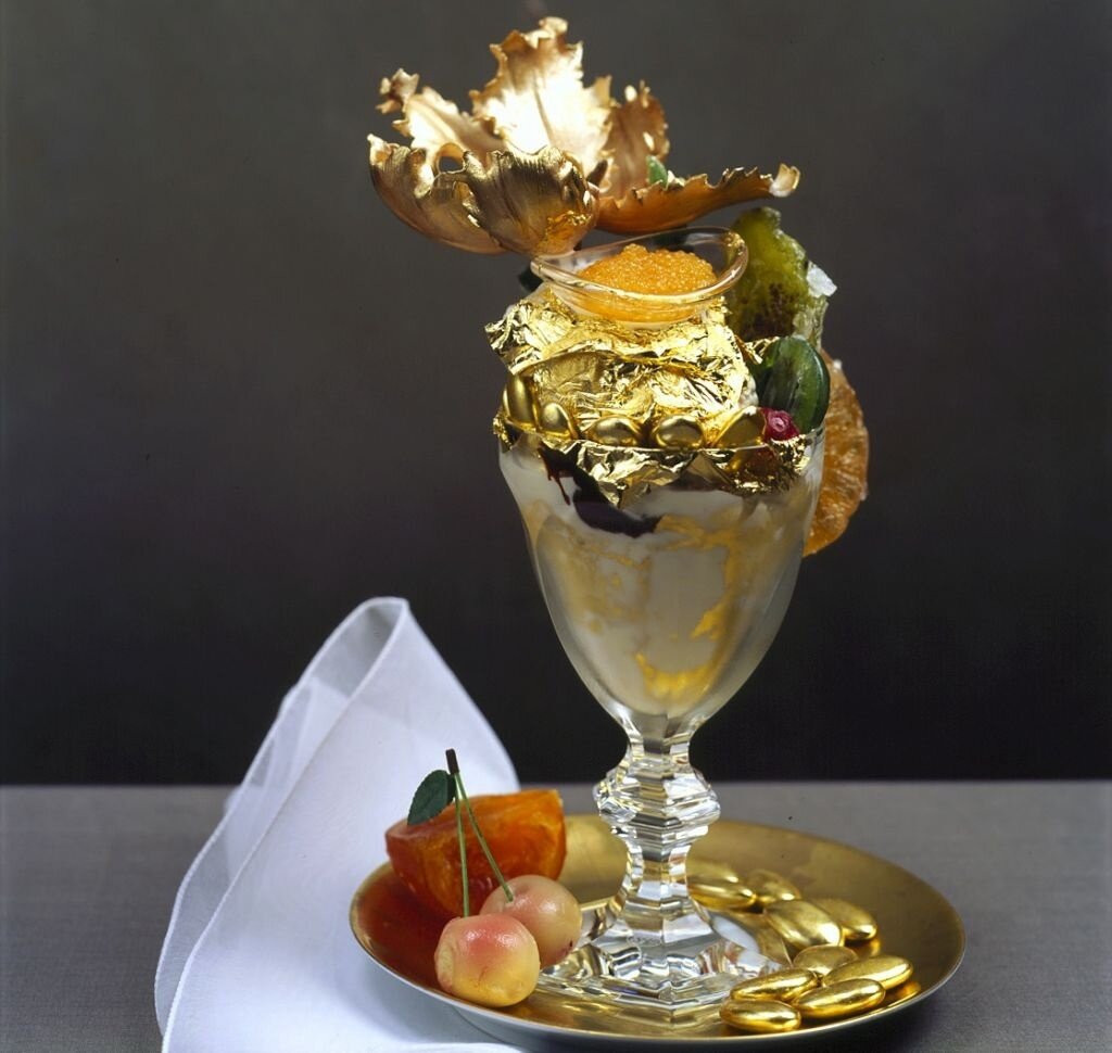 Представляем вашему вниманию Топ5 самых дорогих блюд на сегодняшний день. Убийцы кошельков. От таких сумм не то что кушать перехочется, но и жить, наверное, тоже) 5 место: Фритата с лобстером. Этот омлет с икрой и лобстером готовят только в одном ресторане Нью-Йорка: "Norma’s". Идея приготовления этого блюда пришла в голову директору ресторана еще в далеком 2004 году и вскоре его блюдо стало всемирно известным. Стоимость: 1000 долларов. 4 место: Голубые пельмени. Как и предыдущее блюдо, Голубые пельмени тоже пошли родом из Нью-Йорка. Отведать оригинальных пельмешек можно в ресторане "Золотые ворота". Это обойдется вам всего лишь в каких-то 2,5 тыс. американских долларов. 3 место: Суши по-филиппински. Хотели бы попробовать суши с майонезом за 3 тысячи долларов? Если да, тогда вам прямая дорога в Филиппины, ведь только там готовят самые дорогие суши в мире. Подается данное блюдо на подушке из шафрана и украшается золотой фольгой. 2 место: Пицца Луи ХIII У блюда, которое зан
