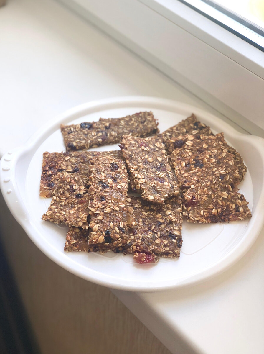 Признавайтесь, кто не любит попить чай или кофе с шоколадкой или конфеткой?))) Я вот очень люблю, но мы знаем что это влияет на наш вес, сахар, и так далее, что очень плохо сказывается на организме. Поэтому записывайте рецепт полезного и сладкого перекуса, но тоже не налегайте по вечерам, лучше утром, тк калорийность у него все же не маленькая. Нам потребуется: 70 гр овсянки, можно долгой варки, можно пятиминутки. 1 спелый банан 50 гр цукатов 30 гр орехов любых Вы можете не добавлять цукаты, а сделать просто ореховые батончики, на любой вкус, добавить можно все что угодно. Кладем банан в блендер, превращаем в пюре, добавляем цукаты, орехи и овсянку, немного еще прокручиваем для того чтобы все ингредиенты смешались. Перекладываем на противень и формируем квадрат, как на фото. Разогреваем духовку до 160 градусов и выпекаем 25-30 минут, они должны подрумянится. Еще теплые разрезаем на небольшие порции и наслаждаемся)
