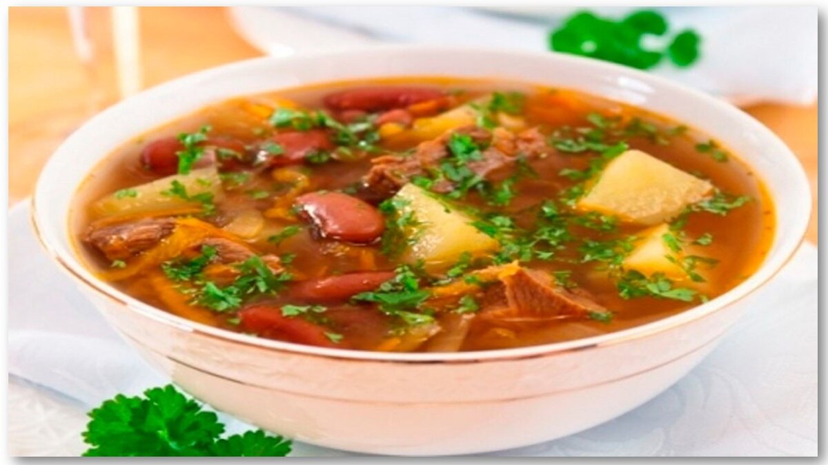 Ингредиенты: ❦ соль-чайная ложка ❦ лук-2 шт ❦ сухой тимьян- одна чайная ложка ❦ розмарин-(на кончике ножа) ❦ петрушка столовая ложка ❦ горошек( свежий)-200 г ❦ перец черный половина чайной ложки ❦ фасоль (белая)-200 г ❦ кукуруза консервированная (в зернах)-300 г ❦ чеснок- 1 зубок ❦ жир-3 стол.л. ❦ томатная паста-3 стол.л. ❦ говядина -400 г Приготовление: 1)Замочить фасоль в воде(холодной) часов на 12. 2)Лук очистить ,помыть и нарезать кубиками. 3)Чеснок почистить и помыть,нарезать. 4)Чеснок немножко посыпаем солью и перемешиваем. 5)На сковороду добавляем жир ,растапливаем его и жарим на нем чеснок и лук до подрумянивания. 6)В двух литрах воды варить на огне (небольшом) фасоль,предварительно посолив и поперчив воду. А также в фасоль нужно добавить сырое мясо. Фасоль с мясом варим часа 2-2,5. 7)Далее,достаем мясо и жарим его вместе прожаренными луком и чесноком .Минут 5 прожарить. 8)Разводим томатную пасту в воде и добавляем к мясу. Тушим минут 10. 9)С фасоли не сливаем