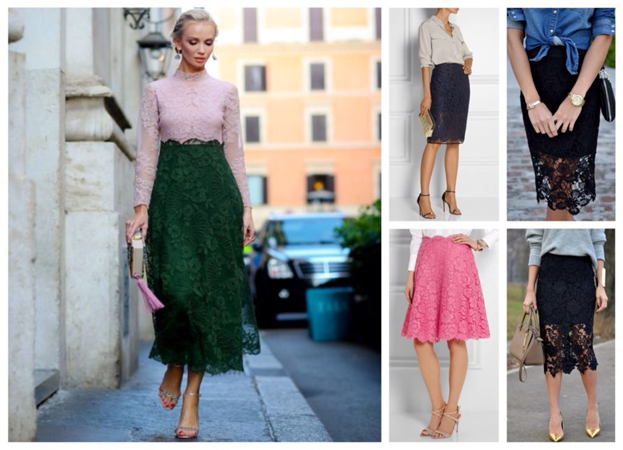 Модницам, предпочитающим нежные, романтичные и изящные образы, стоит обратить внимание на кружевные юбки. Данный элемент женского гардероба сможет украсить любую обладательницу прекрасного пола, необходимо лишь грамотно выбрать нужный силуэт. Разнообразие фасонов предоставляет шанс подобрать подходящий вариант для любого типа фигуры. Несмотря на то, что кружево само по себе выглядит весьма нарядно, его можно надевать на деловые встречи, работу, создавая с их помощью повседневные луки. Вариант 1 Деловым женщинам следует обратить внимание на кружевную юбку-карандаш нейтрального оттенка. Что касается повседневной жизни или выхода в свет, то подобная модель сможет стать неповторимой изюминкой образа. Молодые худенькие девушки будут интересно смотреться в юбке, которая напоминает балетную пачку. Вариант 2 В кружевной юбке в пол спокойно можно отправиться в офис. Что касается какой-либо другой обстановки, то девушка в подобном наряде будет казаться необычайно женственной и роскошной. Создав