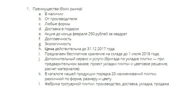 Первым шагом генерируем нишу и, чтобы определить востребованность продукта, проверяем количество запросов в Вордстате. Берем в разработку те, из которых понимаем, что человек хочет купить продукт, а не просто интересуется им: запрос «шапки оптом» — подходит, а «зимние шапки» — нет. Также смотрим, чтобы количество показов в месяц было больше 1 000. Перед созданием текстового прототипа делаем мониторинг конкурентов, которые рекламируются в Яндекс.Директе. Они тратят деньги на размещение, а значит, следят, чтобы на сайты приходила целевая аудитория. Поэтому внимательнее ищут проблемы потенциальных клиентов и указывают их решение у себя на сайтах. Причем мы начинаем анализ не с сайта, а с рекламного объявления.Потому что его задача — сконвертировать просмотр в переход. И именно поэтому конкуренты умещают в объявлениях максимальное количество преимуществ. Мы все их выписываем. Сайт анализируем не с точки зрения потенциального клиента, который изучает его за несколько секунд, а с первой до п