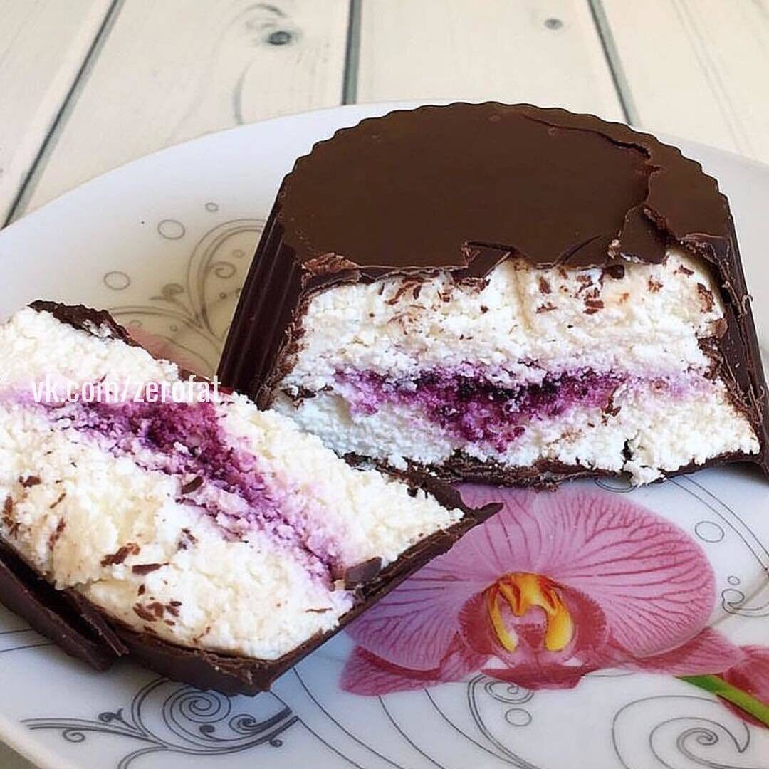 Ещё один вкуснейшей десерт для худышек! Читаем, готовим, едим, худеем)) Ингредиенты: Творог 150 г Черный шоколад 50 г Сах.зам или другой подсластитель по вкусу Джем 1 ч.л Топим горький шоколад на водяной бане. Когда шоколад расплавился, кухонной кисточкой размазываем шоколад по формочке (можно использовать несколько малених формочек), ставим в морозилку на 10 мин. Творог смешиваем с сах.замом и выкладываем в формочку до половины, далее ложку джема, (либо любые ягоды) и оставшийся творог....ставим в морозилку на 10 мин, и заливаем слоем шоколада. Ставим в холодильник до полного застывания.