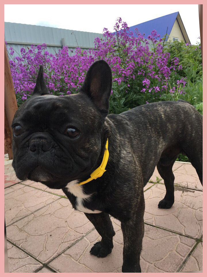 Французского бульдога сложно спутать с английскими и американскими сородичами. Внешность француза узнаваема с первого взгляда. Этот милый пес с большими ушами, обиженной мордой и грустными глазами сразу западает в душу. Француз вырастает до небольшого, «комнатного» размера, относится к декоративным породам. Голова крупная, с резким переходом ото лба к носу. Лапы короткие, корпус крепкий, округлый. Кровь бойцовских псов выдает широкая грудь. Окрасы французского бульдога варьируют от молочного до кофейного оттенка. Допускаются пятна, вкрапления, маски на морде, полосы. Большие светлые или темные пятна обычно проявляются на голове, груди, животе, спине, боках. Краткое описание стандарта породы представлено ниже. Бульдоги имеют короткую плотную шерсть. Волоски густые и жесткие, без подшерстка. Визуально собака выглядит гладкой, почти голой. Голубая, шоколадная, бежевая с маской и мраморная расцветки признаются браком. Источник