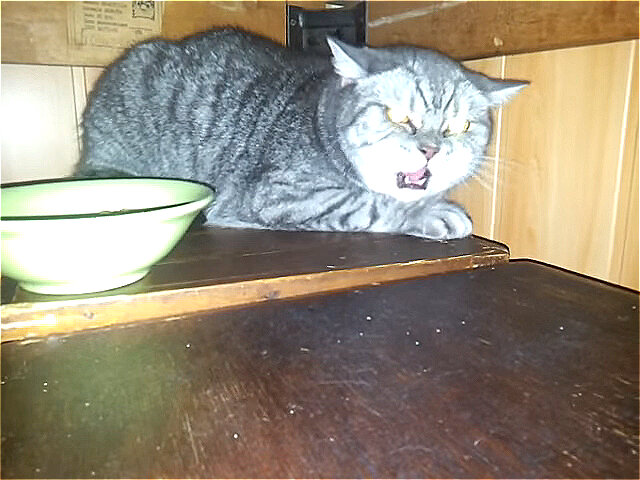Свирепый и отчаянный, неизвестно какая муха его укусила или не муха. Быть может в корме, который ему дали были какие-то добавки, и он так отчаянно охраняет тарелку. Может ему приснился страшный сон, и он еще не до конца проснулся. А может быть у него просто плохое настроение или вообще характер такой. Что бы там не случилось, я бы на месте хозяев оставил его в покое, и поберег свои руки от резких выпадов кота. Явно человек не нужен сейчас коту, чтобы придти в себя, он сам себе успокоитель. Время лечит и плохое настроение тоже. Ставьте лайки и подписывайтесь на канал.